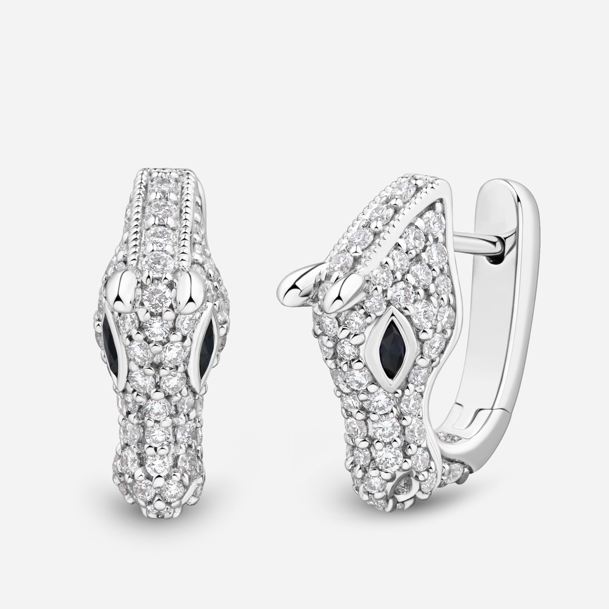 Inspired by the refined strength and noble elegance of the horse, the Celebration Horse Head Diamond Hoop Earrings are crafted in polished 18K gold and illuminated with a pavé of meticulously selected natural diamonds. Sculpted with precision, each earring features a smooth, fluid silhouette that curves gracefully around the ear, while two deep-blue sapphires form the expressive eyes of the design.