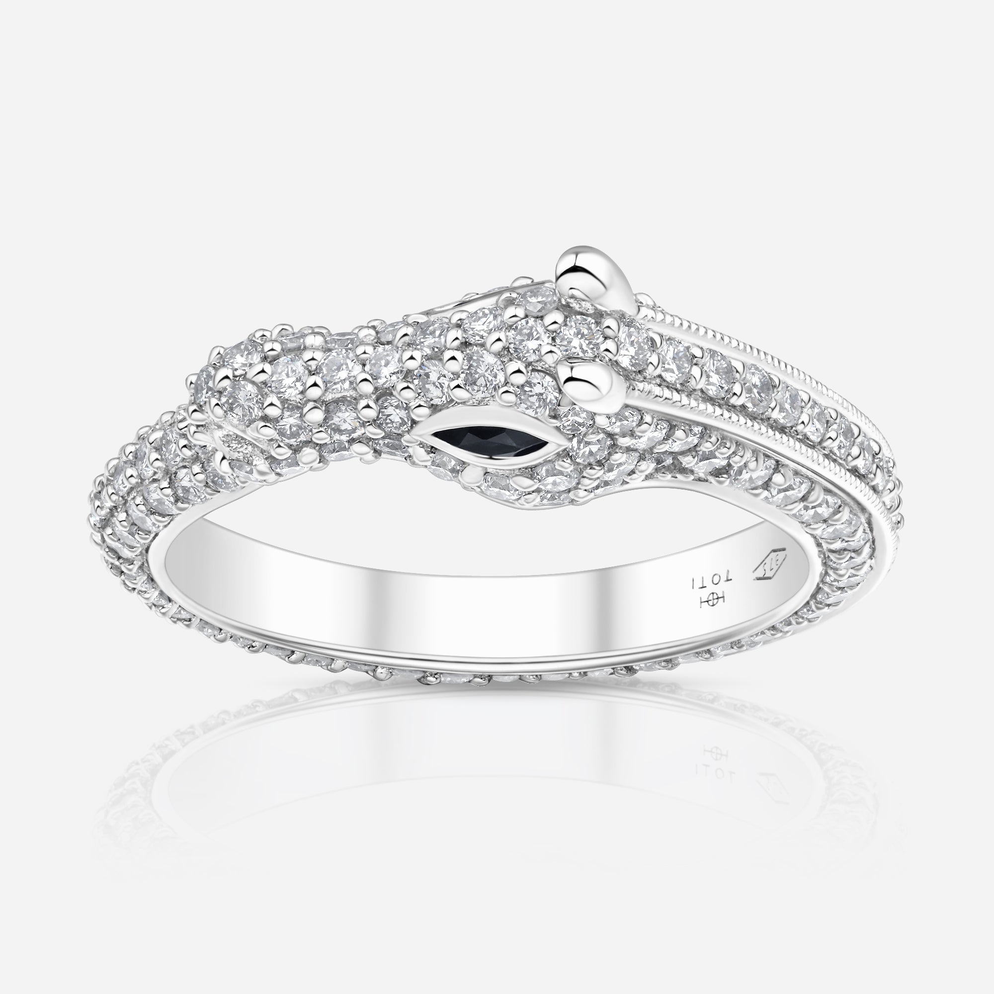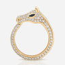 A sculptural expression of elegance and strength, the Celebration Horse Head Ring is crafted in 18K gold and fully illuminated with a pavé of hand-set natural diamonds. Each stone is positioned with exceptional precision to enhance the fluid silhouette of the horse’s profile, creating a continuous ribbon of light that wraps gracefully around the finger. The design is refined, architectural, and unmistakably modern - a piece that embodies quiet luxury and timeless character.