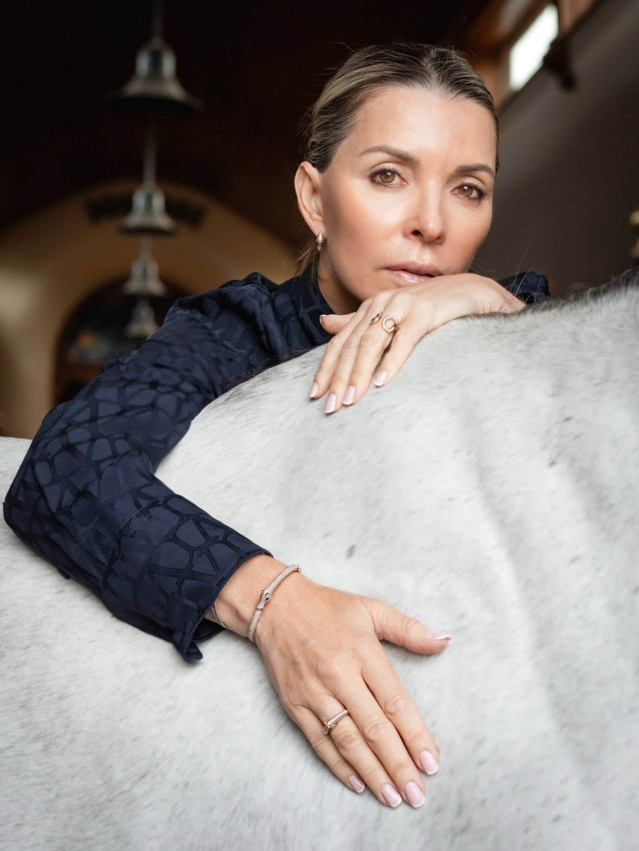 The Celebration Horse Head Bangle is sculpted in solid 18K gold, capturing the refined strength and graceful lines of the horse. Its smooth, fluid silhouette wraps naturally around the wrist, achieving a perfect balance between bold presence and understated elegance.